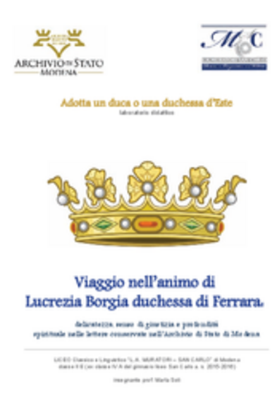 Nell'anno che l'Archivio di Stato di Modena ha deciso di dedicare a Lucrezia Borgia d'Este, riproponiamo il volumetto (Edizioni “Il Fiorino”- Modena, stampato con il contributo del Rotary Club “L. A. Muratori” di Modena) esito dell’attività condotta negli anni scolastici 2015-16 e 2016-17 dalla classe ora V E del Liceo Classico e Linguistico “L. A. Muratori - San Carlo” di Modena, prof.ssa Marta Soli, già presentato in occasione della 15ma Settimana della didattica in Archivio.