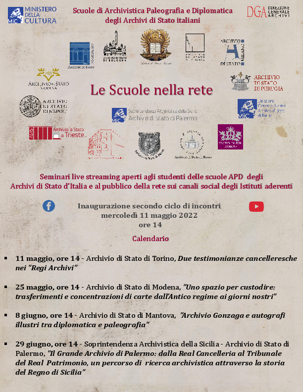 Il progetto di collaborazione è nato esattamente un anno fa dalla consapevolezza che condividere le risorse e le conoscenze acquisite negli anni dalle scuole APD degli Archivi di Stato italiani costituisce un importante vantaggio in termini di allargamento dell’offerta didattica. Mercoledì 11 maggio 2022 prende il via il secondo ciclo di incontri delle scuole nella rete con l’obiettivo di ampliare la panoramica sul patrimonio archivistico italiano iniziata con la prima serie di lezioni: si riparte con il seminario proposto dall’Archivio di Stato di Torino, facendo poi tappa negli Archivi di Stato di Modena, Mantova e Palermo.